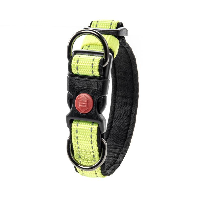 TSPRO 犬用首輪 ダブル D バックル 反射素材 快適ソフトパッド サイズ調整可能 脱落防止 簡単装着 中型小型犬向け ファッション散歩アウトドアペットコラール (黄緑 Yellow-green Size2)