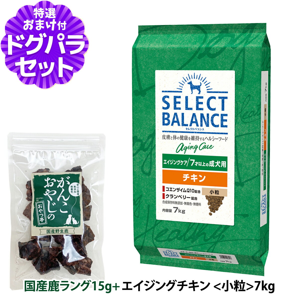 セレクトバランス エイジングケア チキン 小粒7kg+国産鹿ラング15g 犬 シニア