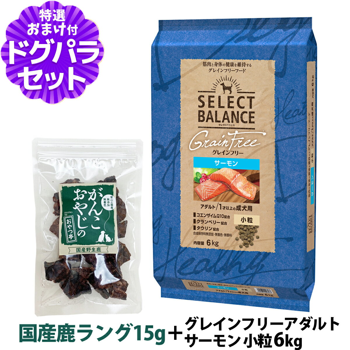 セレクトバランス グレインフリー アダルト サーモン 小粒6kg+国産鹿ラング15g 犬 成犬 穀物フリー