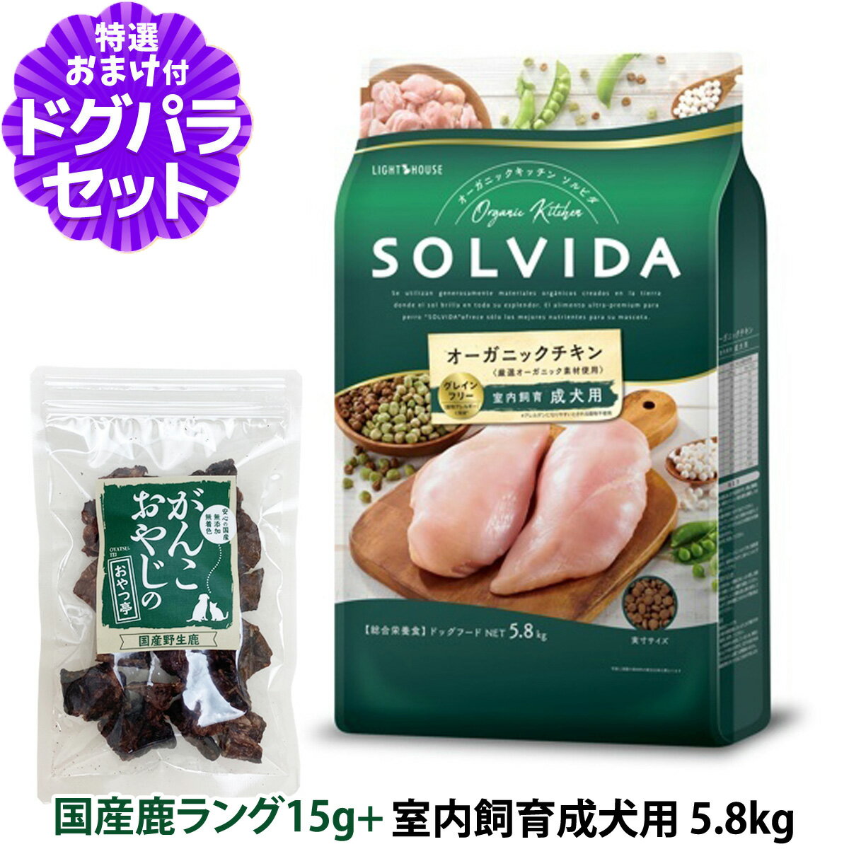 ソルビダ SOLVIDA ドッグフード グレインフリー チキン 室内飼育成犬用 5.8kg+国産鹿ラング15g 犬 SOLVIDA インドア 成犬 室内犬 ドッグ