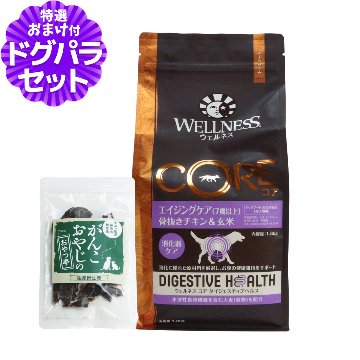 ウェルネス コア ダイジェスティブヘルス エイジングケア (7歳以上)骨抜きチキン&玄米 1.8kg+国産鹿肉ジャーキー(お試しサイズ)