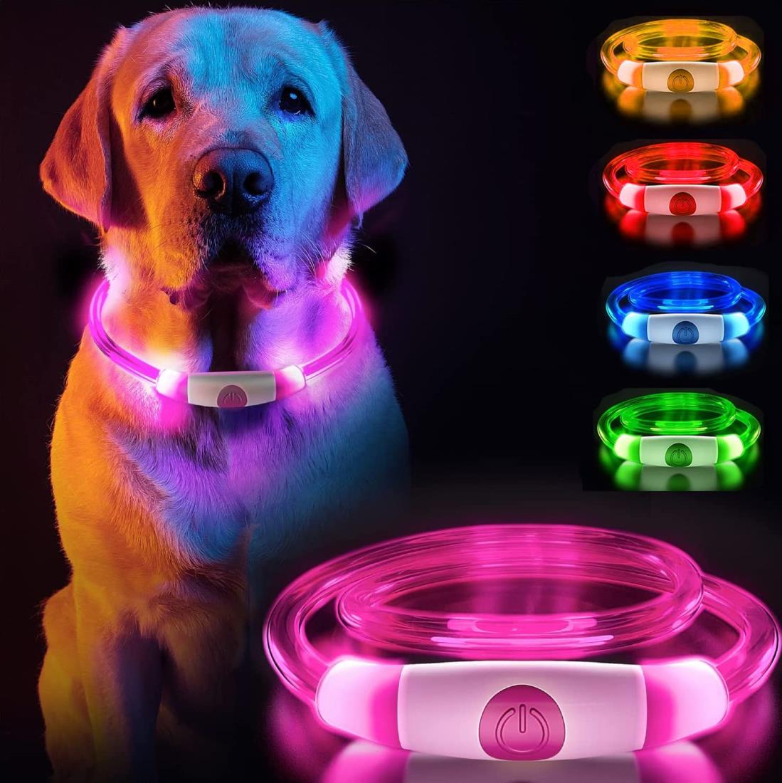 JHIFHG光る首輪光る 犬犬 ライト 散歩LED犬用首輪 USB充電式 光るペット犬用首輪 夜間安全 おしゃれ光る首輪 小型犬・中型・大型犬用 (ピンク)