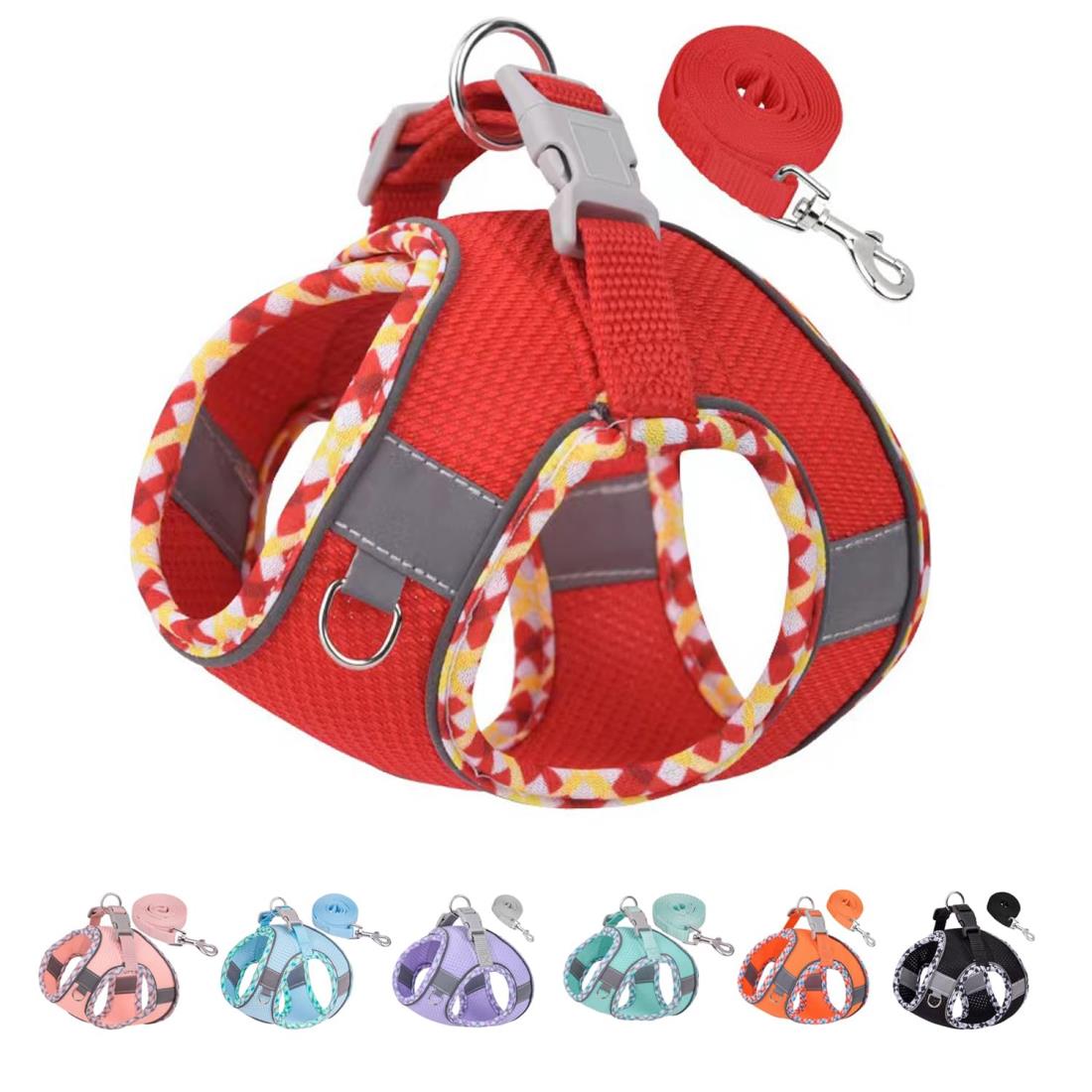 ペット用ハーネス犬 ハーネス超小型犬のハーネス 中型犬歩行、ランニング、トレーニングに便利な犬用ハーネスとベルトセット小型犬用ハーネス、小中型犬用ハーネス (L, レッド)