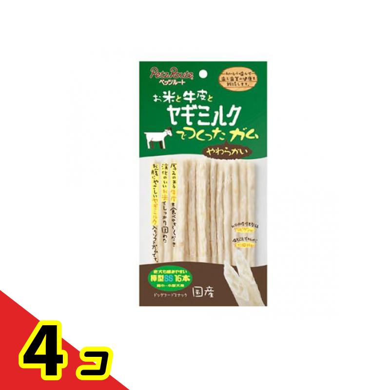 【送料無料!(地域限定)】ペッツルート お米と牛皮とヤギミルクでつくったガム 棒型SS 16本入 4個セット