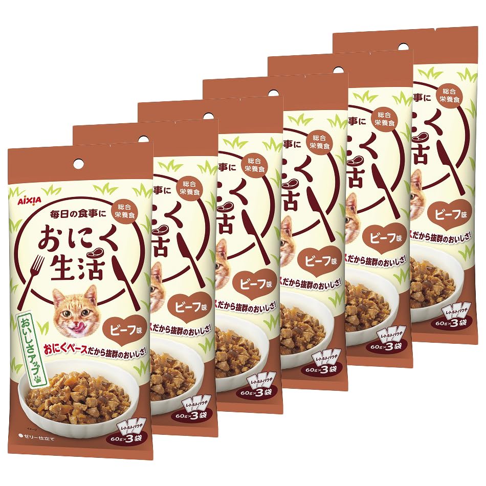 おにく生活 ビーフ味 総合栄養食 180g(60g×3袋)×6個セット