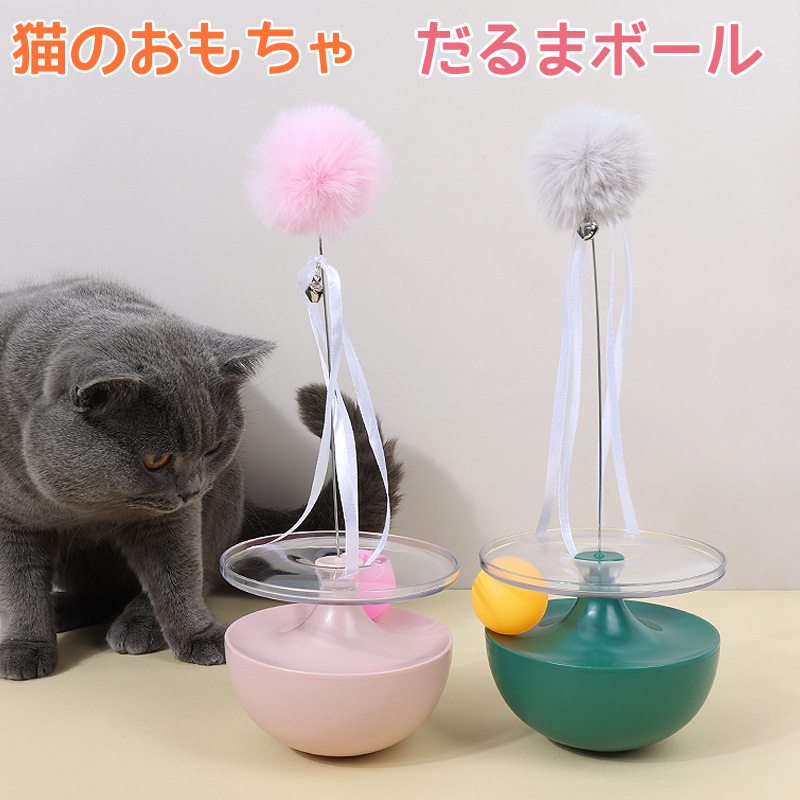 猫おもちゃ 猫じゃらし だるま ポンポン付き ボール だるまボール 倒れない 猫用おもちゃ ペットおもちゃ 面白い 3カラー 猫知能玩具