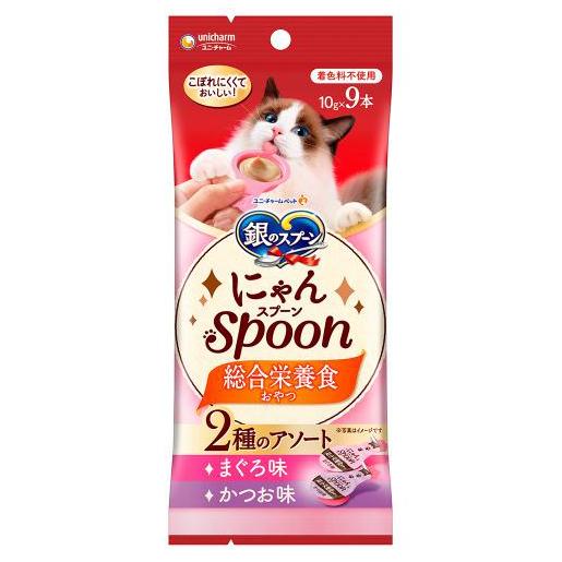 猫用おやつ 銀のスプーン 三ツ星グルメ おやつ にゃんSpoon 総合栄養食 2種のアソートまぐろ&かつお味 90g(10g×9本) ユニ・チャーム ニヤンSソウゴウマグロ&カツオ90G