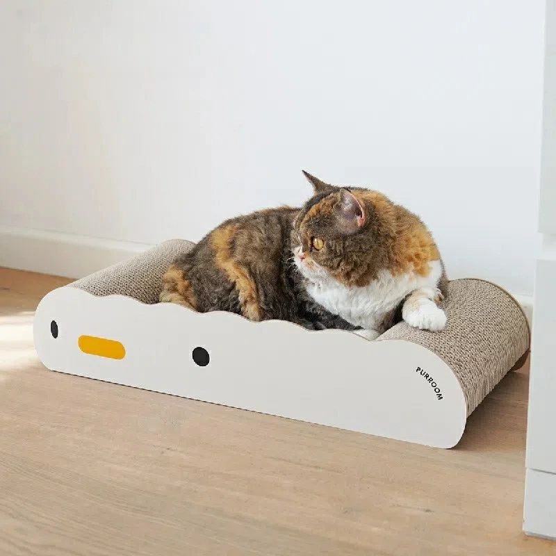 【段ボール製/爪とぎ付き】大型猫ベッド ソファ保護 猫用ラウンジチェア 一体型猫ハウス 組み立て不要 かじり防止設計(エコ素材/耐久性