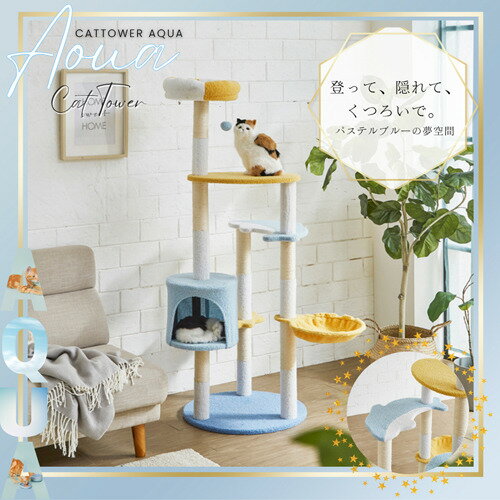 後藤家具物産 キャットタワー アクア 小屋付き ハンモック付き ブルー CAT-TW-AQUA