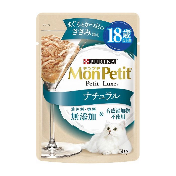 ネスレ日本 ネスレピュリナペットケア Mon Petit モンプチ プチリュクス ナチュラル 18歳以上用 まぐろとかつおのささみ添え 30g