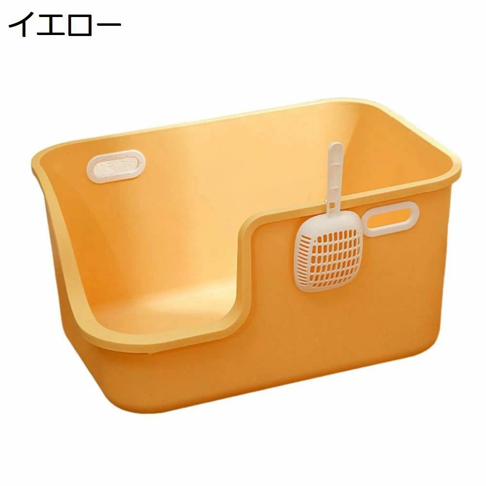 大型猫トイレ オープンタイプ 猫用トイレ本体 大きめ 深め 猫のトイレ 広々サイズ ゆったり 砂飛び散り防止 大開口 スコップ付き 大きな猫のトイレ ペットトイレ 掃除簡単 階段付き お手入れ簡単 多頭猫用 イエロー