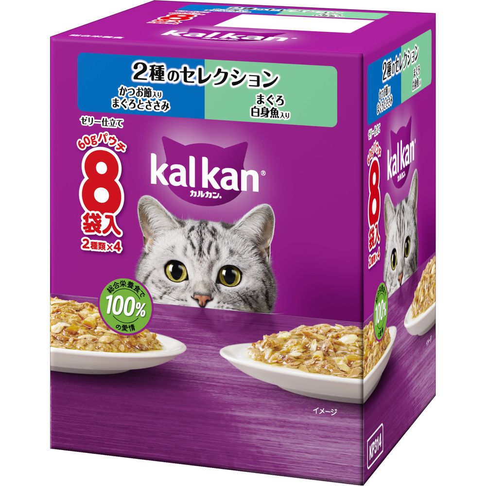 マース カルカン パウチ 2種のセレクション かつお節入りまぐろとささみ まぐろ白身魚入り 60g×8袋パック 猫用フード 【北海道・沖縄・離島配送不可】