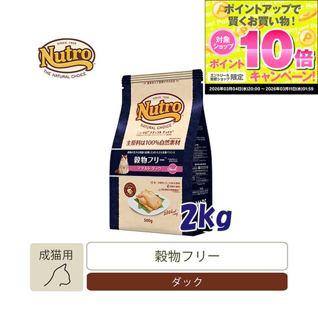 ★スーパーSALEエントリーでP10倍★ナチュラルチョイス 穀物フリー アダルトキャット ダック 2kg 【キャットフード/ドライフード/成猫用(アダルト)/Nutro/ペットフード】【猫用品・猫(ねこ・ネコ)/ペット用品・ペットグッズ】