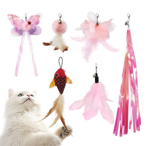 SONGWAY猫おもちゃ ねこじゃらし羽 チョウチョウ 赤い魚交換用
