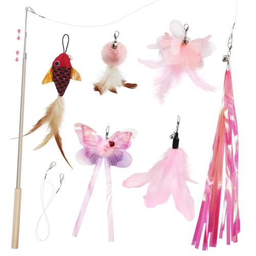 SONGWAY猫おもちゃ ねこじゃらし羽 チョウチョウ 赤い魚釣竿つき