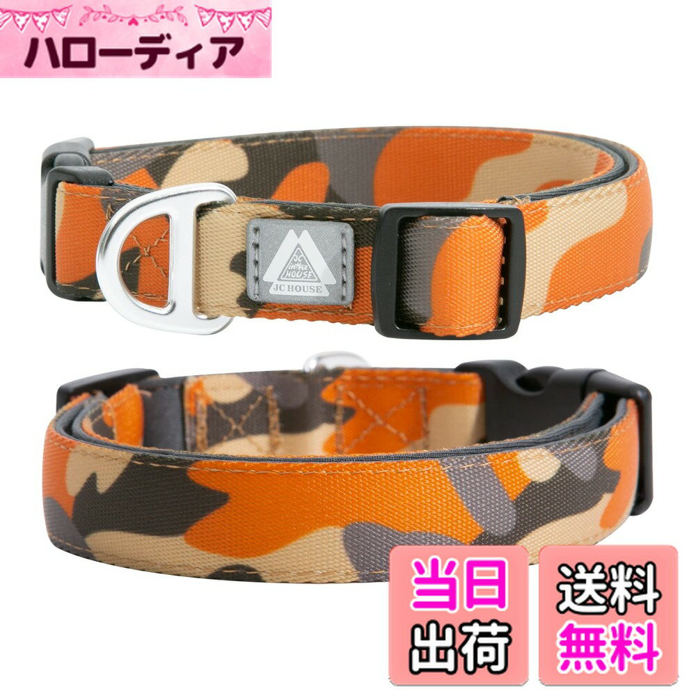 【送料無料】JC HOUSE 犬 首輪 中型犬 子犬 超軽量 柔らかいパッド入り ソフト 軽量 丈夫 負担がない首輪 通気性 3M反射材料 サイズ調整可 装着簡単 しつけ 訓練 散歩 小型犬 大型犬 柴犬 秋田犬(迷彩オレンジ,M)