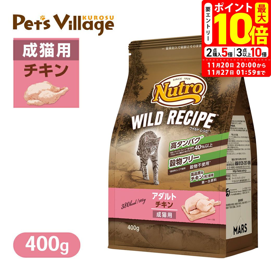 ポイント最大10倍!11/20 20:00〜11/27 01:59まで|お試し 公認店 ニュートロ キャット ワイルドレシピ アダルト チキン 成猫用 400g ごはん ご飯 【ワイルドレシピ(WILD RECIPE)】[キャットフード] ペッツビレッジクロス