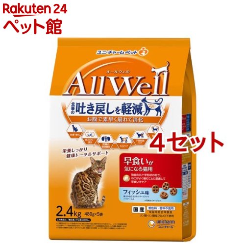 吐き戻し軽減 国産 / オールウェル(AllWell) / オールウェル(AllWell) キャットフード 早食いが気になる猫用 フィッシュ味