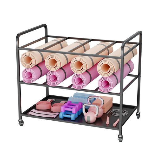 YASICAヨガマットストレージラックヨガマット収納カートホイール付きラージローリングピラティスマットハンガー耐荷重20kg16個のフォームローラーを収納ワークアウトクッションホルダー…