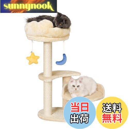 【送料無料】Meecal 仔猫用 キャットタワー ミニ 雲型デザイン (6ヶ月以下/体重4kg未満対応) 省スペース 爪研ぎ付き 組み立て簡単 おしゃれ猫タワー ブラック 高さ62cm ベージュ