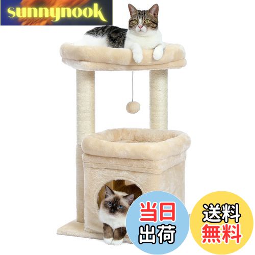 【送料無料】PAWZ Road キャットタワー ミニ 猫タワー 小型 低い 小さめ 据え置き 人気 爪とぎポール 爪研ぎ 麻紐 猫のおもちゃ コンパクト 省スペース 頑丈 安全 猫ハウス 展望台 - 68cm ベージュ