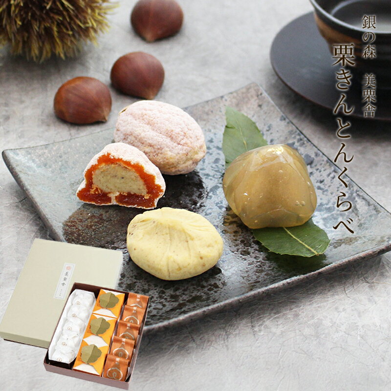 秋冬限定販売の栗きんとんと柿ぼっくり、琥珀のセット商品です。