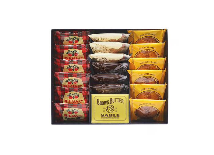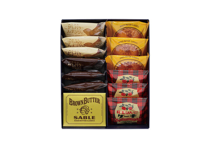 こがしバターケーキをはじめ、フィナンシェや紅玉りんごケーキが入った洋菓子の詰合せです。