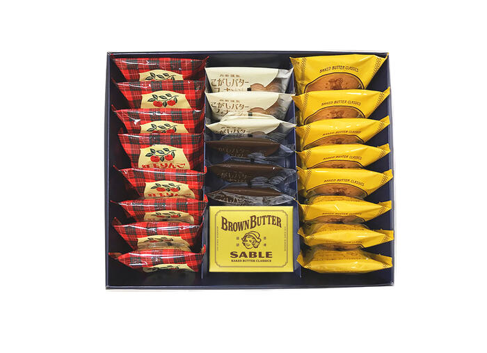 こがしバターケーキをはじめ、フィナンシェや紅玉りんごケーキ、サブレが入った洋菓子の詰合せです。