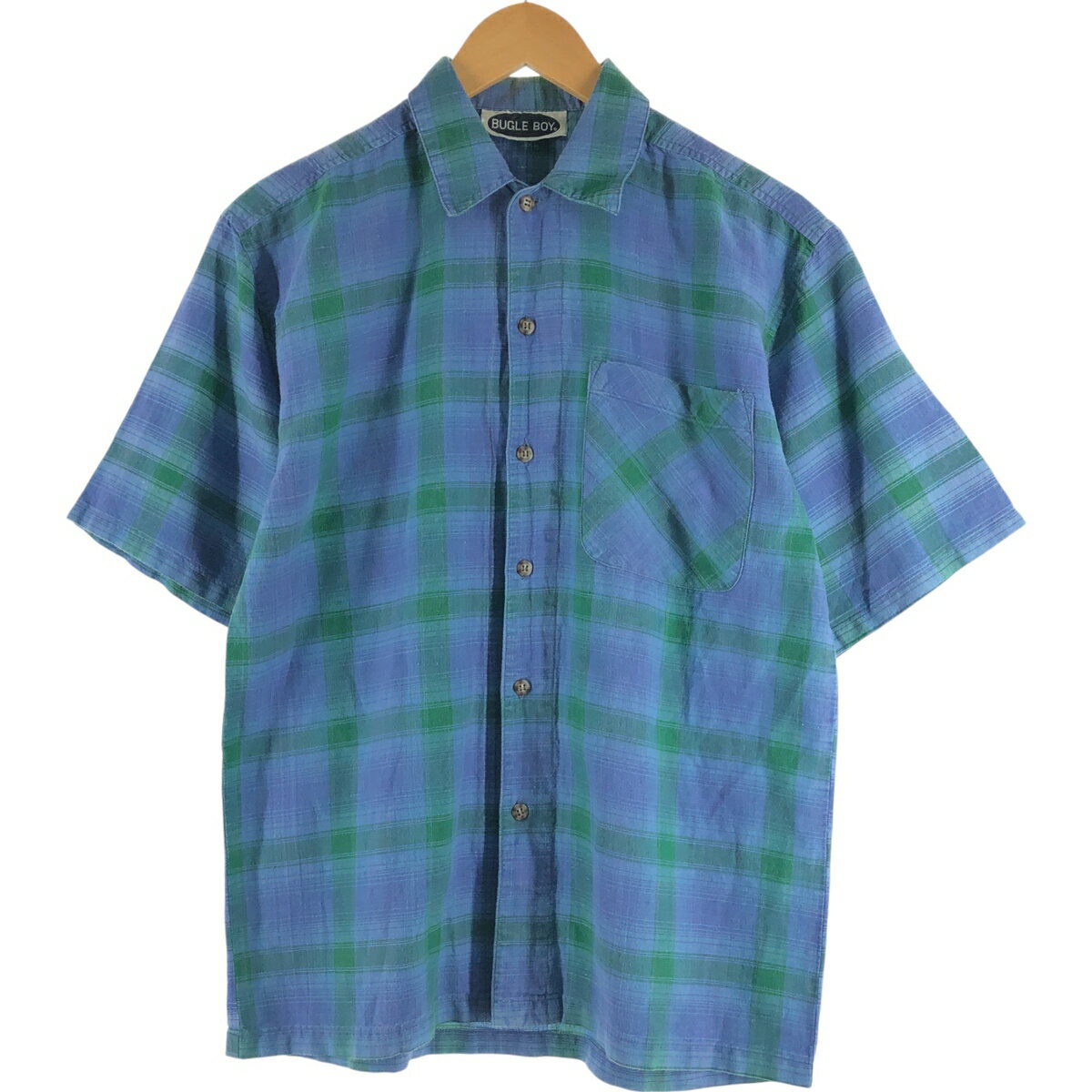 古着 BUGLE BOY 半袖 ラミー×コットン チェックシャツ ボックスシャツ メンズL相当