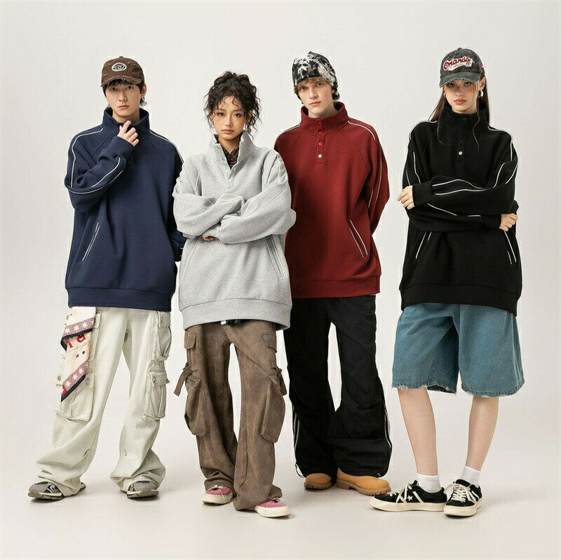 送料無料 メンズ トレーナー スウェト トップス アウター 長袖 無地 秋服 春服 運動着 スポーツウェア ルームウェア ハイネック ライン ゆったり レディース 男女兼用 カップル ポケット レッド 黒 グレー 楽天海外通販