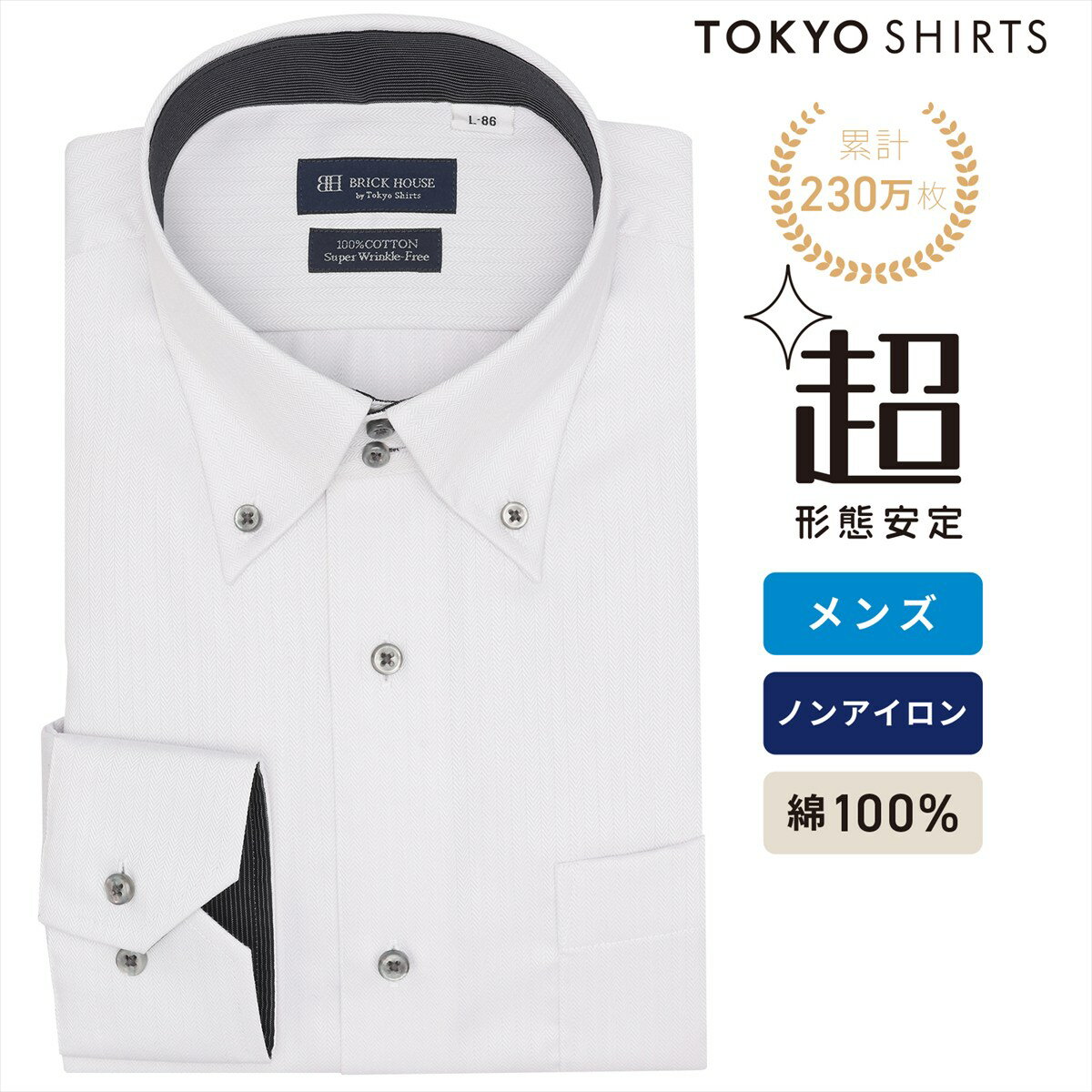 ワイシャツ メンズ 長袖 形態安定 ノーアイロン Yシャツ カッターシャツ ビジネス フォーマル 最短翌日配送 東京シャツ ブリックハウス BRICK HOUSE シャツ工房