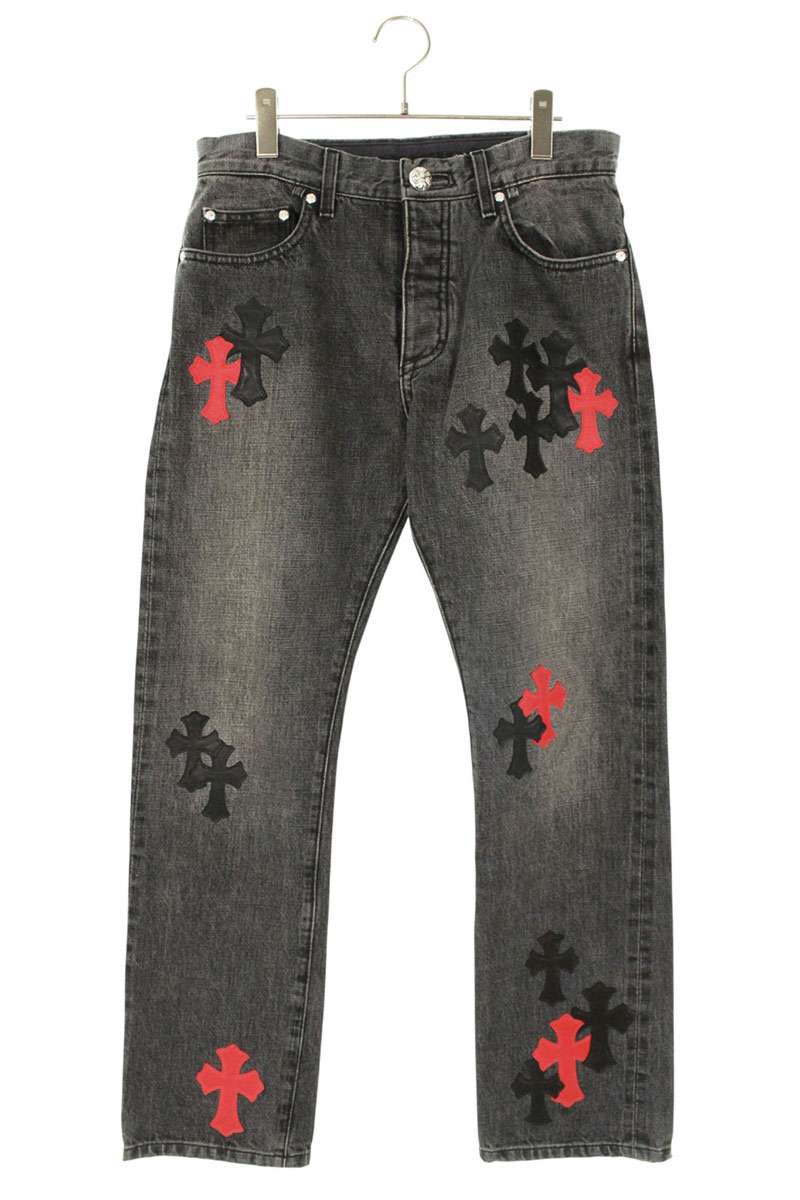 クロムハーツ Chrome Hearts サイズ:30インチ JEAN STRTLG FBRC クロスパッチ付きウォッシュドデニムパンツ(ブラック×レッド×シルバー)【410152】【SS07】【メンズ】【中古】bb377#rinkan*A