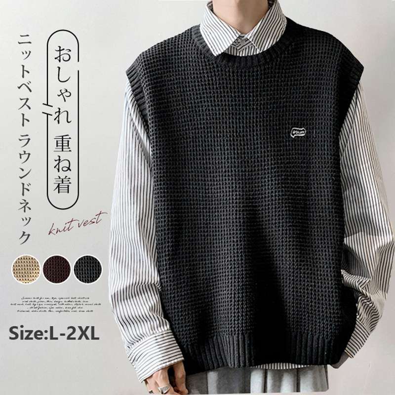 ニットベスト ラウンドネック トップス 春 秋 メンズ 無地 ゆっ