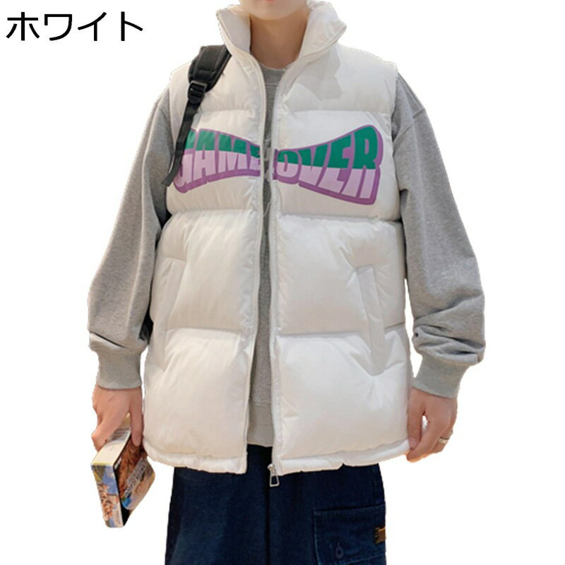 中綿ベスト 英字柄 ファション 立ち襟 ポケット付き メンズ 秋冬 綿入れ チョッキ ノースリーブ パファーベスト ダウンコットン 無袖ジャケット 防寒 保温 ベーシック 通学通勤 ゆったり