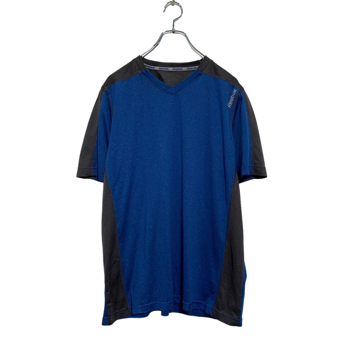 【中古】【古着】 Reebok 半袖 ロゴTシャツ L~ ブルー グレー リーボック 切替 Vネック ワンポイント スポーツウェア 古着卸 アメリカ仕入 a604-7119