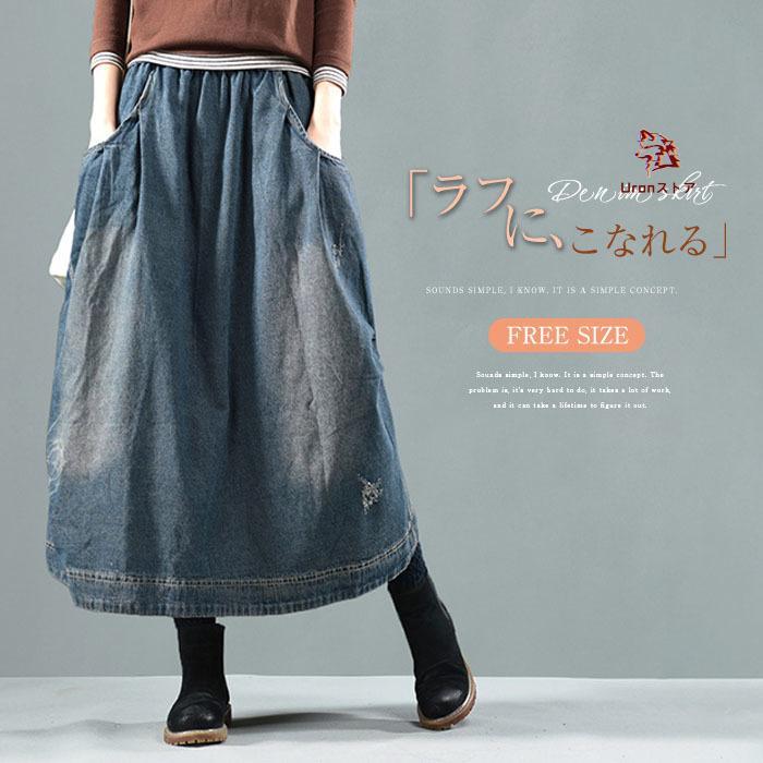 【送料無料】デニム ロングスカート スカート レディーススカート デニムロングスカート ボトムス ボリューム 大人 かわいい ボトム 着痩せ Aライン コットン 綿