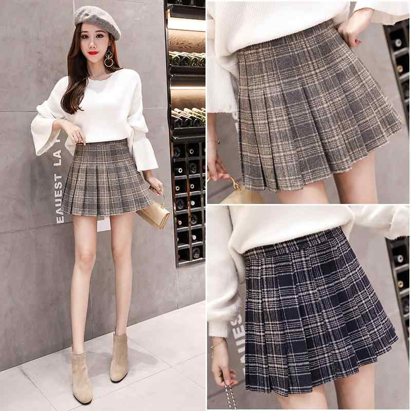 送料無料 プリーツスカート ミニスカート チェック 無地