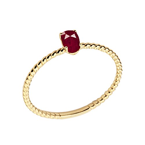 【中古】【未使用・未開封品】上品な14?Kイエローゴールドスタッカブルoval-shaped Rubyロープ婚約/プロミスリング