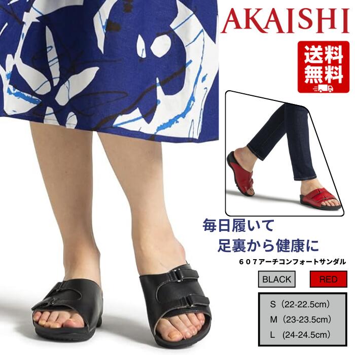 アカイシ アーチフィッター 607 アーチコンフォートサンダル ブラック レッド ローヒール サンダル コンフォートサンダル 外反母趾 幅広 甲高 4E対応 母の日 AKAISHI 送料無料