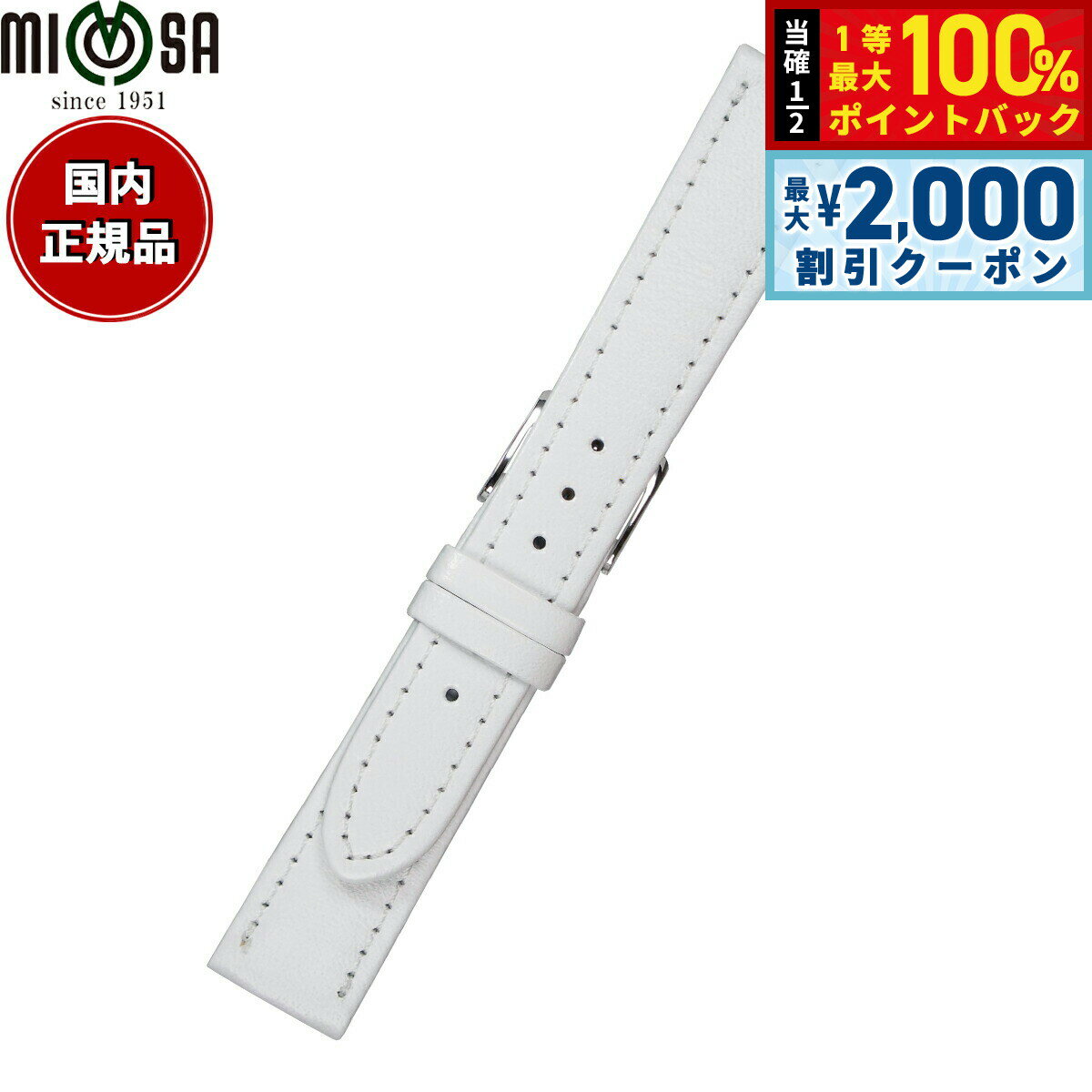 【10%OFFクーポン!&店内ポイント最大52倍!本日限定!】ミモザ MIMOSA 腕時計 替えバンド ベルト メンズ Eカーフ カーフ 19mm ホワイト/シルバー 時計 時計バンド 時計ベルト 革 牛革