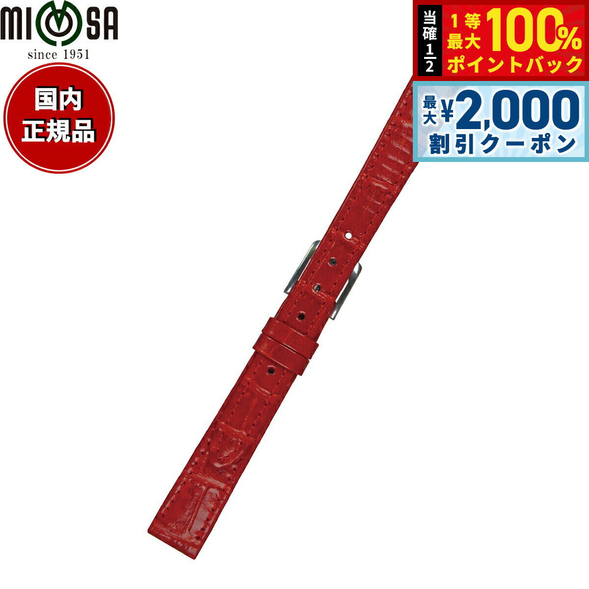 【10%OFFクーポン!&店内ポイント最大52倍!本日限定!】ミモザ MIMOSA 腕時計 替えバンド ベルト レディース P型押ワニ カーフ 14mm レッド/シルバー 時計 時計バンド 時計ベルト 革 牛革