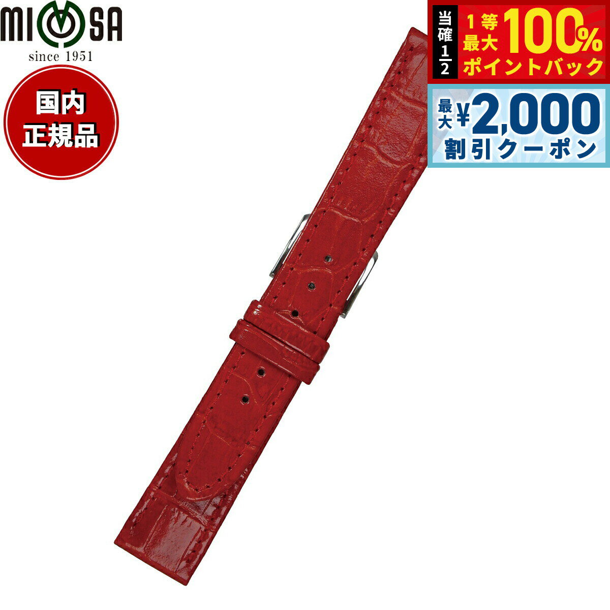 【10%OFFクーポン!&店内ポイント最大52倍!本日限定!】ミモザ MIMOSA 腕時計 替えバンド ベルト メンズ P型押ワニ カーフ 17mm レッド/シルバー 時計 時計バンド 時計ベルト 革 牛革