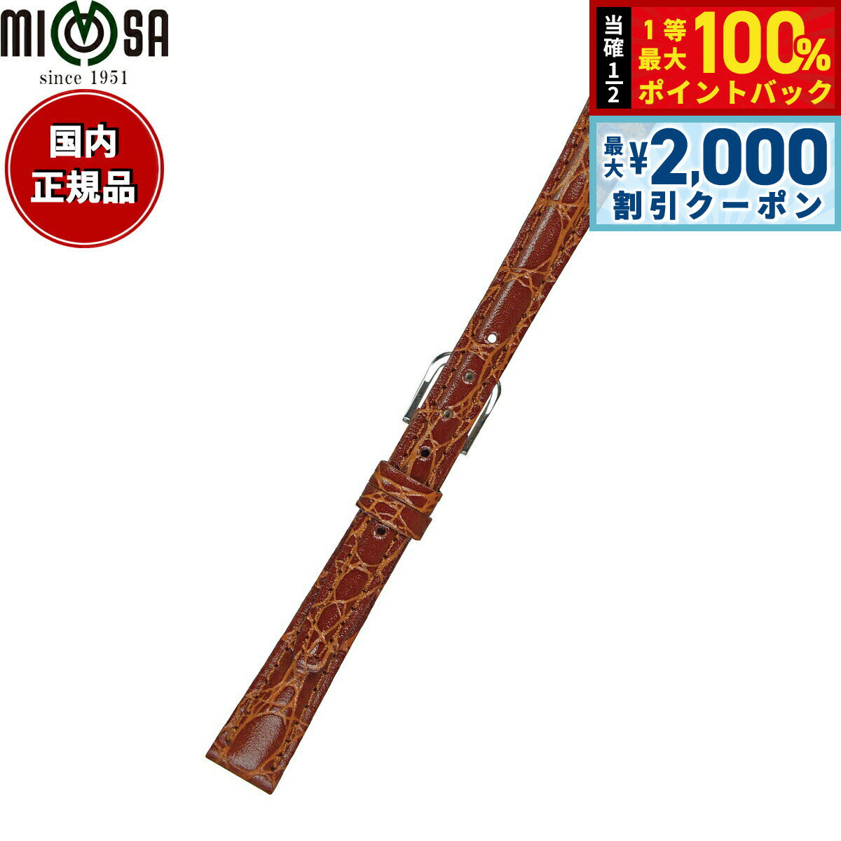 【10%OFFクーポン!&店内ポイント最大52倍!本日限定!】ミモザ MIMOSA 腕時計 替えバンド ベルト レディース RA型押ワニ カーフ 12mm ブラウン/シルバー 時計 時計バンド 時計ベルト 革 牛革
