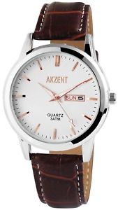 【送料無料】腕時計 アクセントホワイトブラウンローズゴールドアナログレザー×akzent herrenuhr wei braun rosgold datum amp; tag analog leder x2900016001
