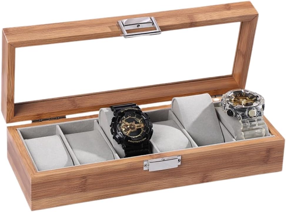 時計ケース 3本 木製 腕時計 コレクションケース ボックス ショーケース 高級 時計 ガラス 窓 インテリア 指輪 アクセサリー 小物入れ (ナチュラル 6本)