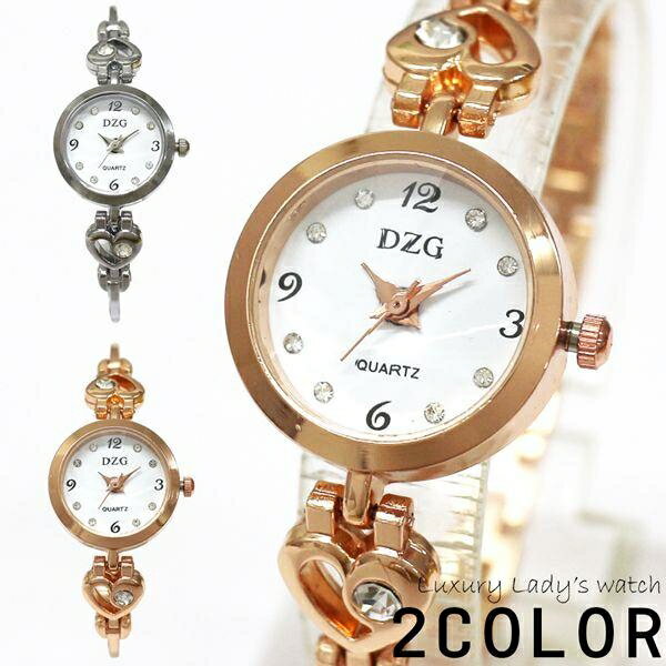 大人かわいいハートデザイン ブレスレットタイプ ラインストーンインデックス AV056 レディース腕時計