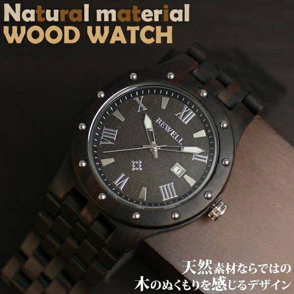 天然素材 木製腕時計 日付カレンダー 軽い 軽量 WDW018-01 メンズ腕時計