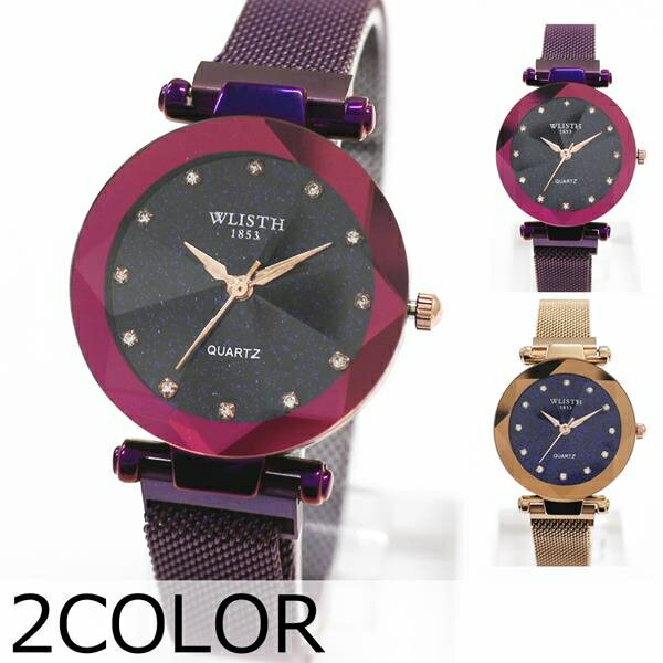 シンプルで上品なラインストーンインデックス 2針 メッシュベルト クオーツ WSQ018 レディース腕時計