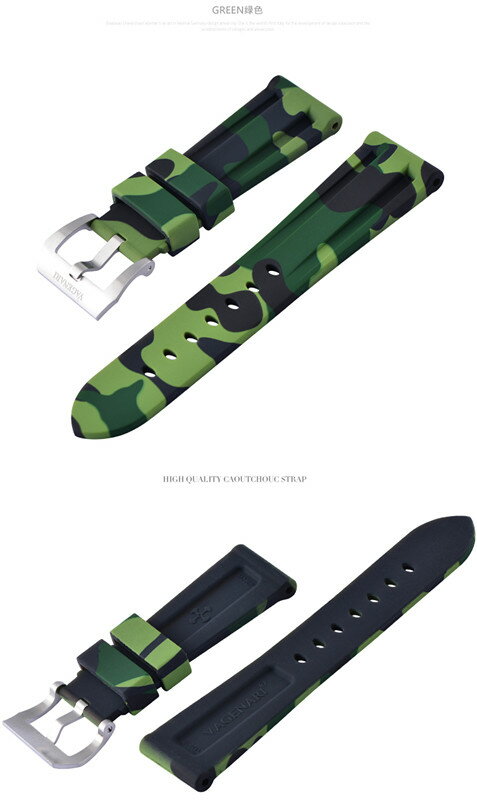 Panerai Luminor/パネライ ルミノール 1950 47mm Vagenariラバー ストラップ/ベルト 26mm適用 バックル付き 迷彩/カモフラージュ アーミーグリーン