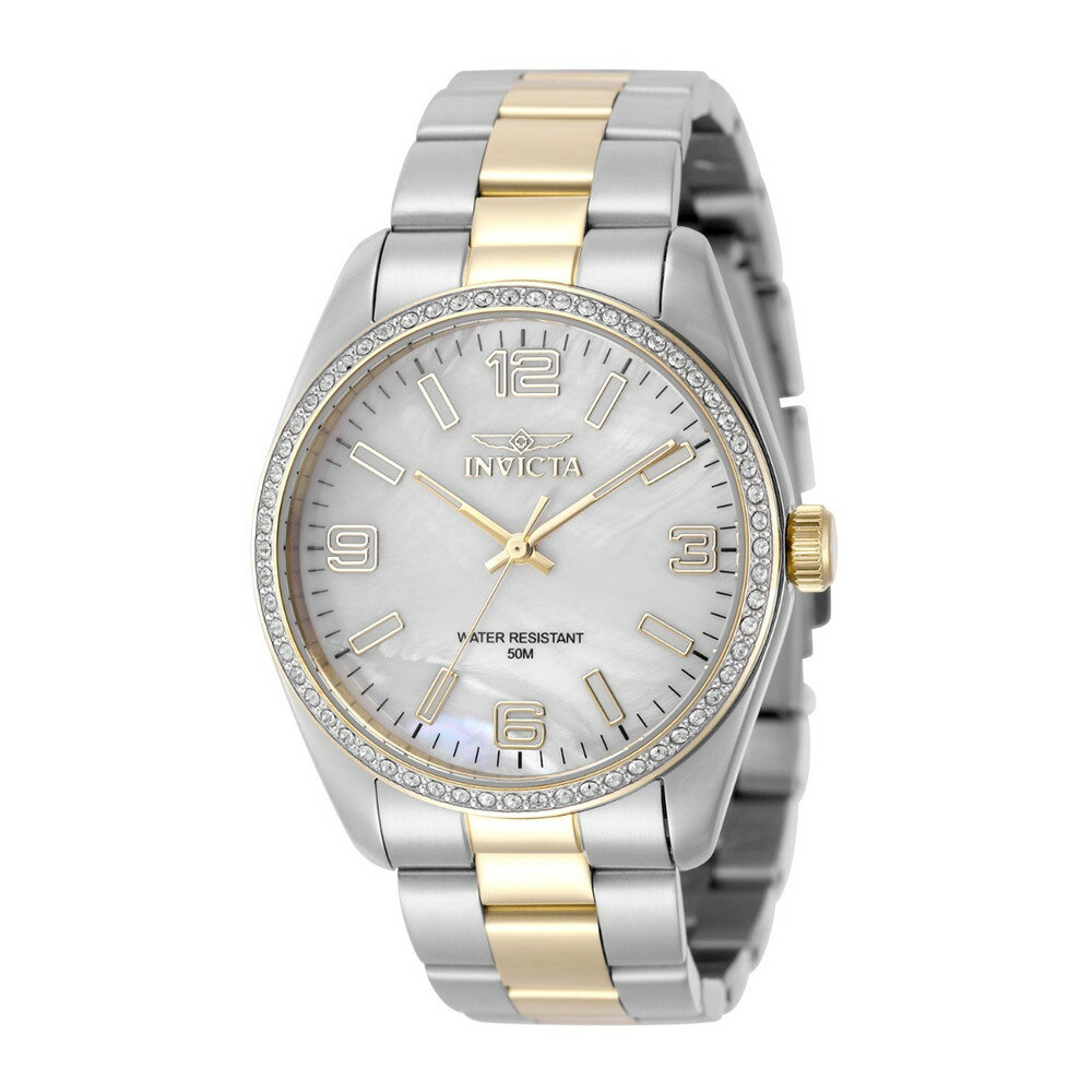 Invictaインビクタ スペシャリティ ユニセックス 腕時計 マザーオブパール ホワイトダイヤル ゴールド ステンレス クォーツ 50m防水